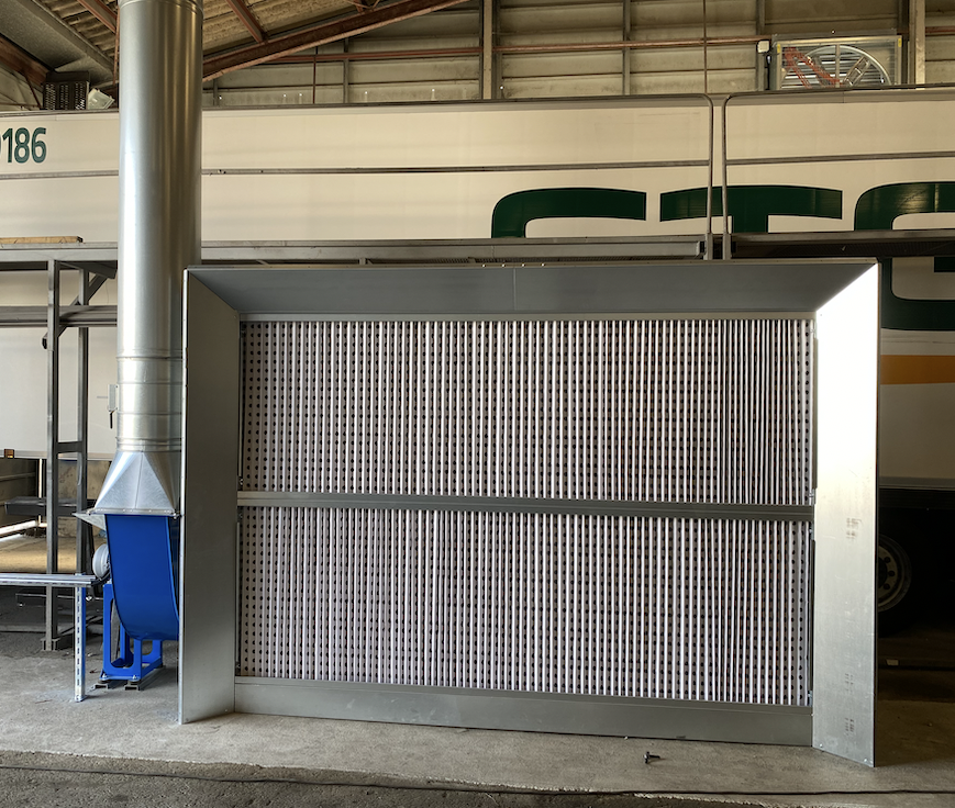– Filtre synthétique non-tissé de la classe EU5 ou G4 - Ventilateur antidéflagrant, monté à l’extérieur du mur de peinture. Cette solution garantit la sécurité et un accès facile à la roue et permet d’effectuer sans problème les inspections recommandées.